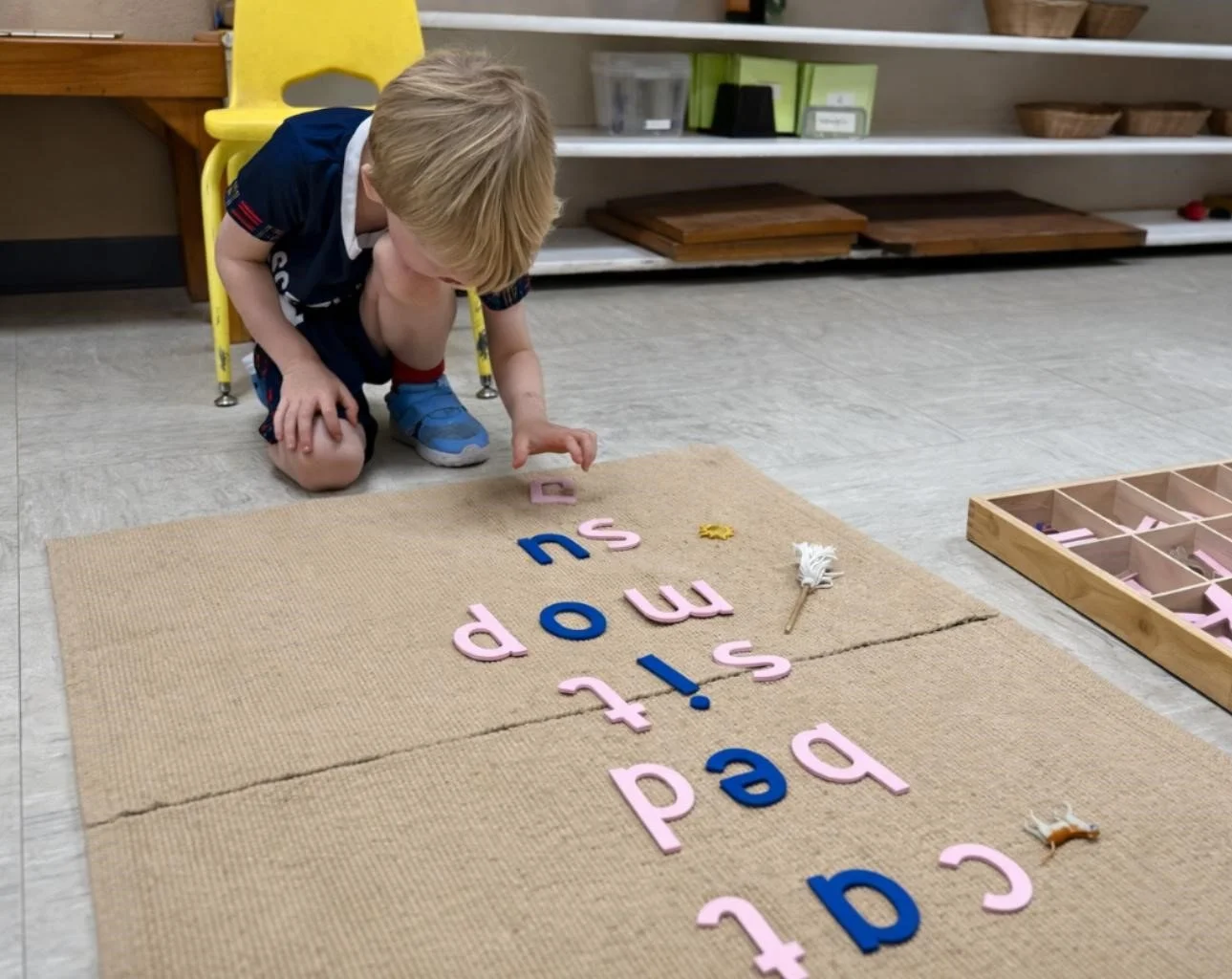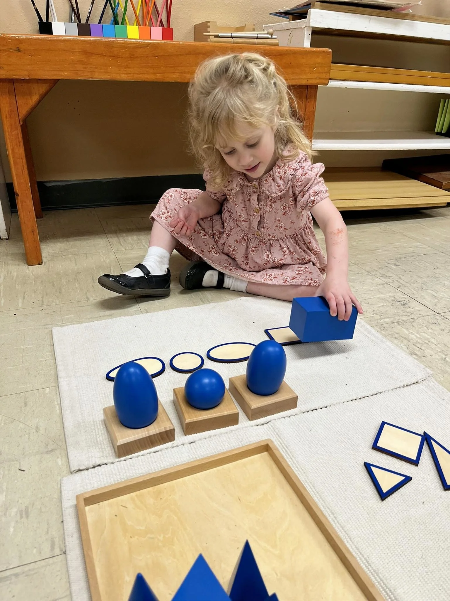 This multi-sensory approach to language, using sandpaper letters, movable alphabets, and hands-on materials, supports the development of reading, writing, and expressive language at each child’s own pace.