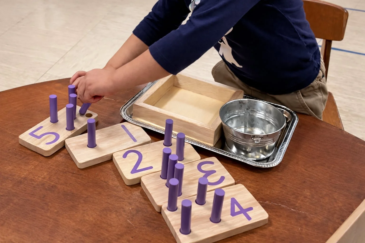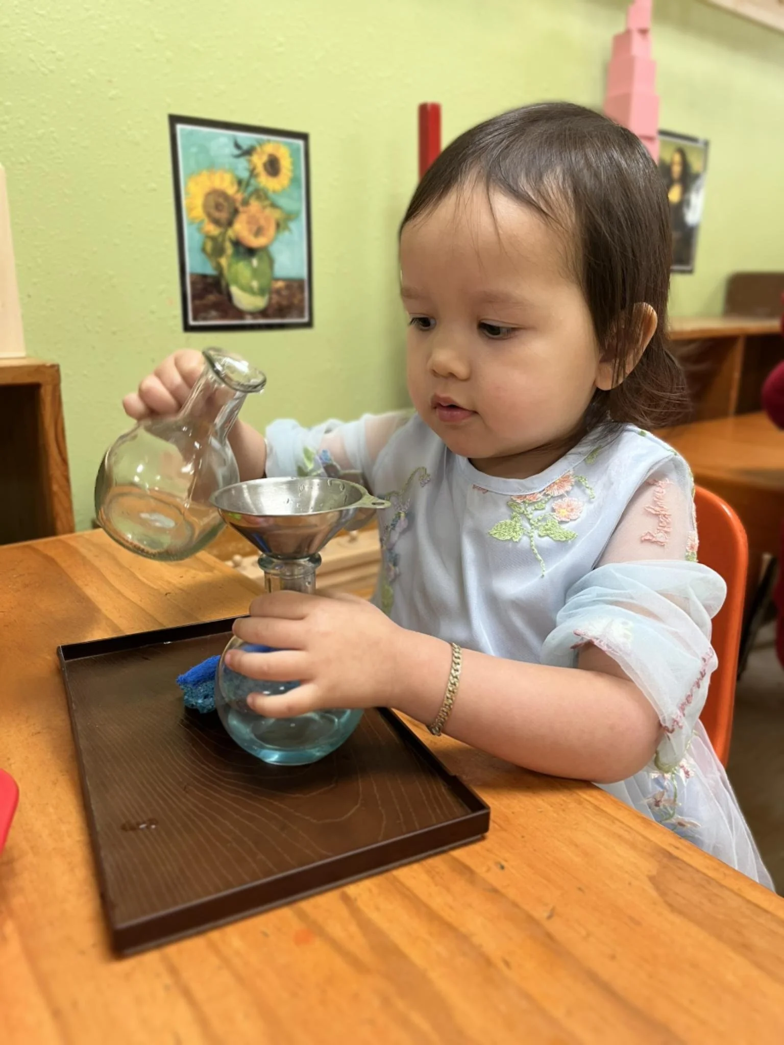 Everything in the environment invites the child to do things for themselves—carrying, pouring, sorting—building a deep sense of capability.