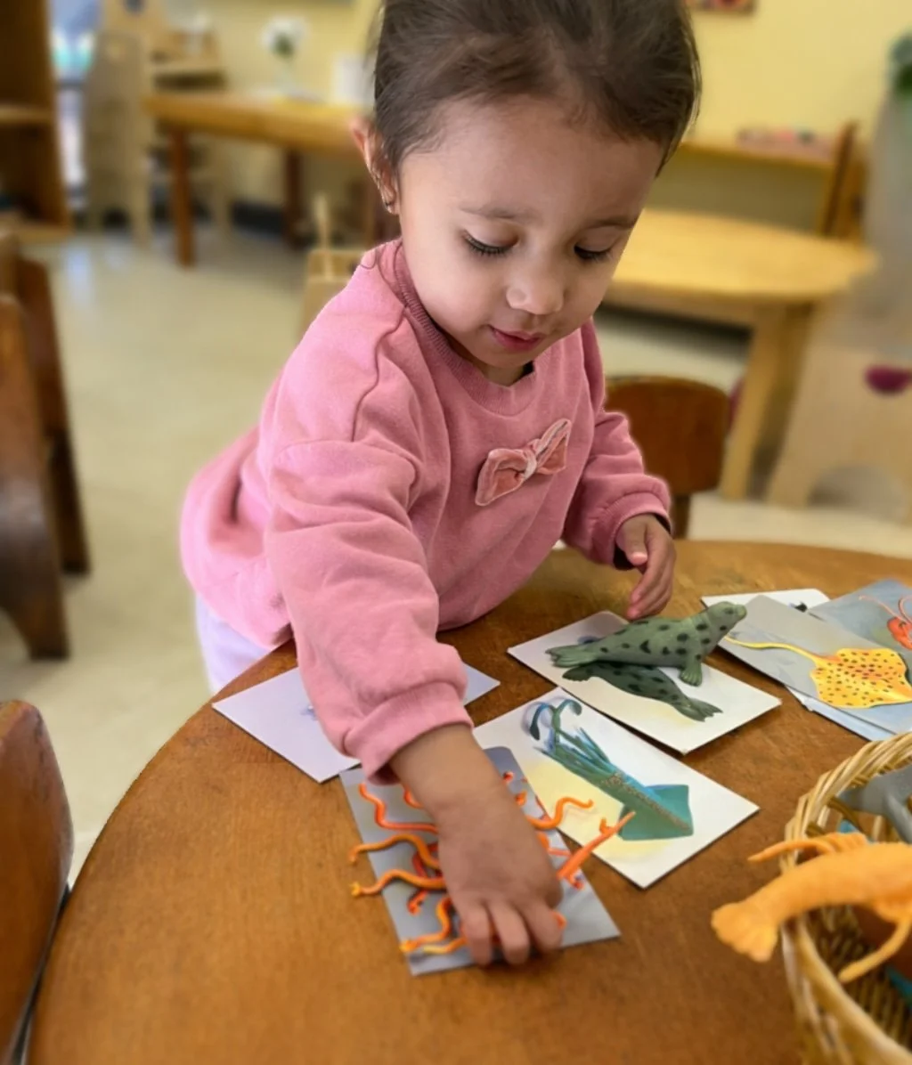 Our Montessori classrooms are calm and organized so that children can move freely and choose purposeful work. Shelves display beautiful, carefully selected materials that encourage exploration.